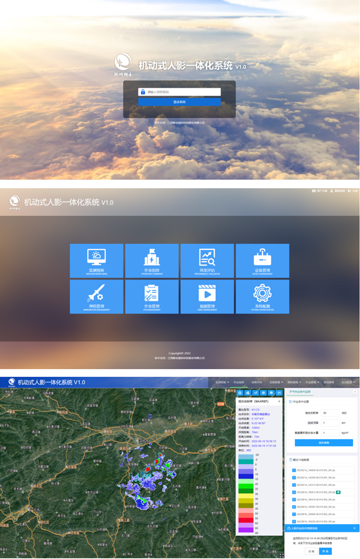 系統(tǒng)基于車輛平臺和氣象觀探測進行實時天氣監(jiān)測、作業(yè)條件告警、作業(yè)指導方案生成以及作業(yè)效果評估,為用戶提供了完整的移動作業(yè)指揮流程管理服務,實現(xiàn)了快速機動、準確觀測、高效決策、實施有力、效果突出的人工影響天氣作業(yè)目標。