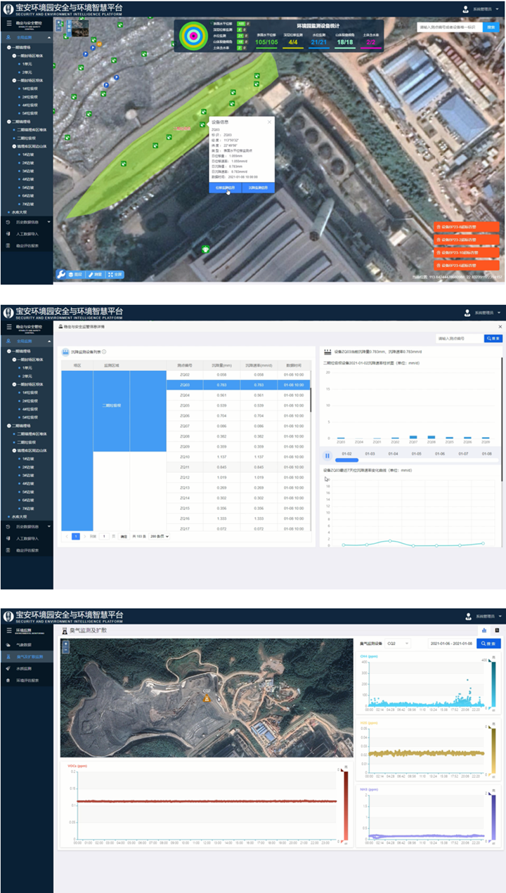 系統(tǒng)實(shí)現(xiàn)對(duì)園區(qū)穩(wěn)定安全與環(huán)境安全的自動(dòng)化監(jiān)控;通過(guò)填埋場(chǎng)堆體內(nèi)滯水位和主水位數(shù)據(jù)的在線監(jiān)控,基于穩(wěn)定分析提出安全預(yù)警等級(jí),掌握填埋堆體的實(shí)時(shí)穩(wěn)定安全性;通過(guò)填埋場(chǎng)堆體、堤壩和填埋場(chǎng)周邊山體沉降、表面位移和深層位移的在線監(jiān)測(cè),掌握?qǐng)@區(qū)穩(wěn)定安全動(dòng)態(tài);通過(guò)園區(qū)臭氣濃度的在線監(jiān)測(cè),掌握?qǐng)@區(qū)實(shí)時(shí)環(huán)境安全情況,并及時(shí)預(yù)警?;谠诰€監(jiān)測(cè)系統(tǒng),提高園區(qū)運(yùn)營(yíng)管控能力。。