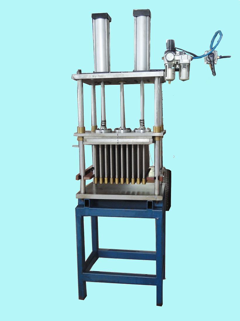 工作原理:用裝藥器一次整盆盆花發(fā)射藥填入,不僅藥量誤差小且不會漏裝。填入傳火密封堵片后送入氣動壓機內(nèi),一次性借助模具將密封堵片送到位。裝填效果零件后裝填密封堵片,送到氣動壓機內(nèi),再一次性將密封堵片送到位。